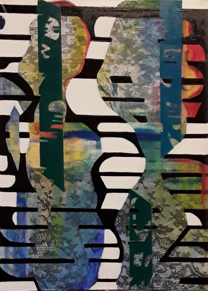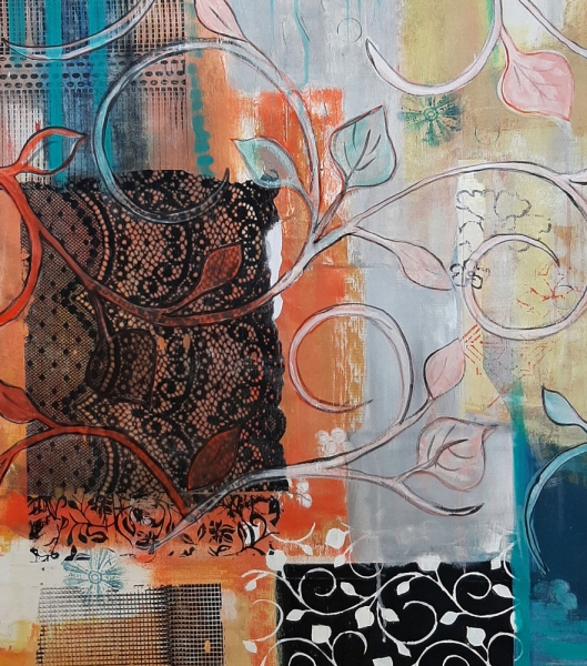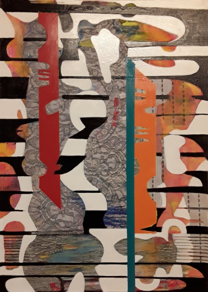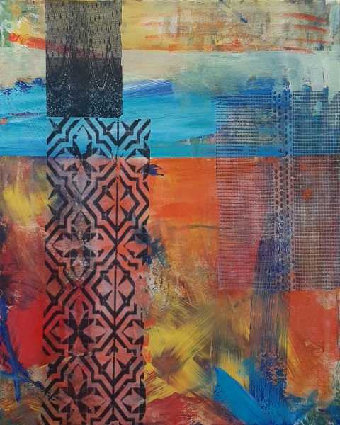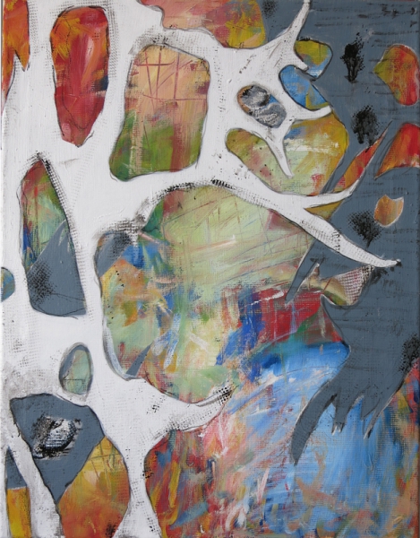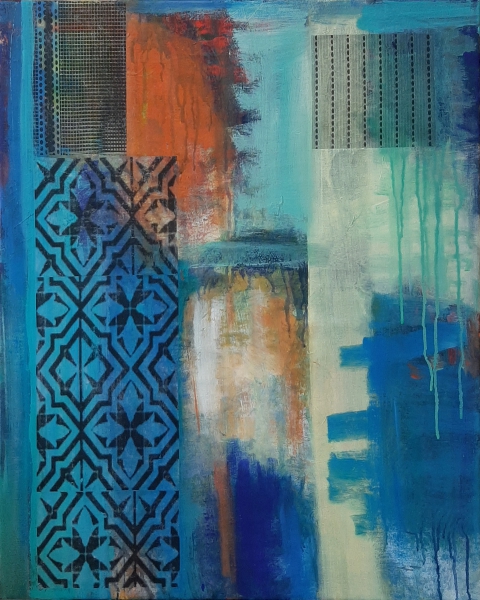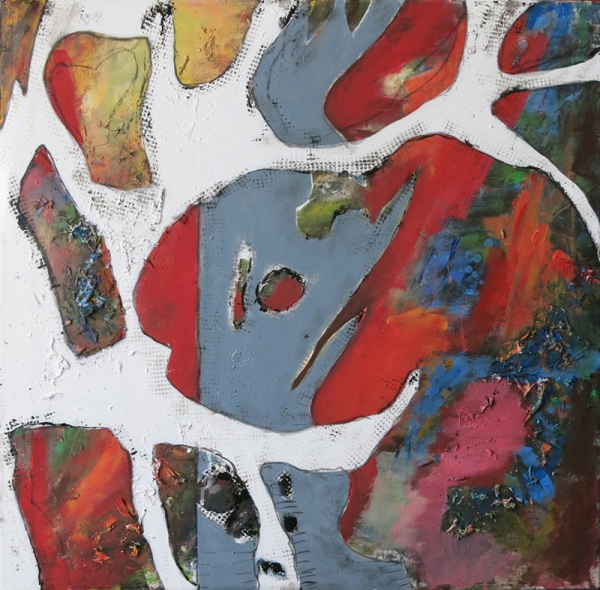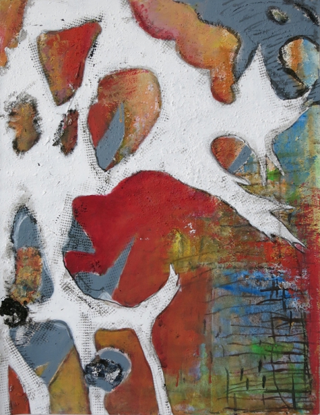 Ich male mit Ölfarben, Wachs, Pigmenten und Acrylfarben. Beim Malen findet ein Prozess des Übereinanderschichtens von Farbe, Formen und Materialien statt, die sich gegenseitig überlagern, verändern, zerstören oder gar auslöschen können. Dabei nutze ich Sand, Stoffe, Holz, Steine, Pappe, Papier und Papiermaché. Durch den Prozess des Übereinanderschichtens und wieder Freilegens tieferer Schichten kann Raum für neue Interpretationen entstehen. Es sollen somit innere Zustände für den Betrachter visuell und haptisch erfahrbar gemacht werden.
