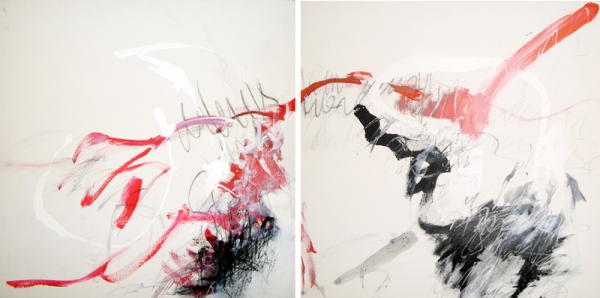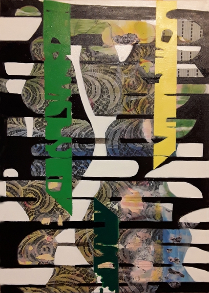 Ich verwende "geschriebene" Worte und Schriftbruchstücke in meinen Bildern. Dabei geht es mir nicht um Schrift oder Text als Übermittler von Informationen und Botschaften. Sondern es geht um das "Schreiben" selbst, als einen Akt der Widerspiegelung und Transformation des Erlebten.